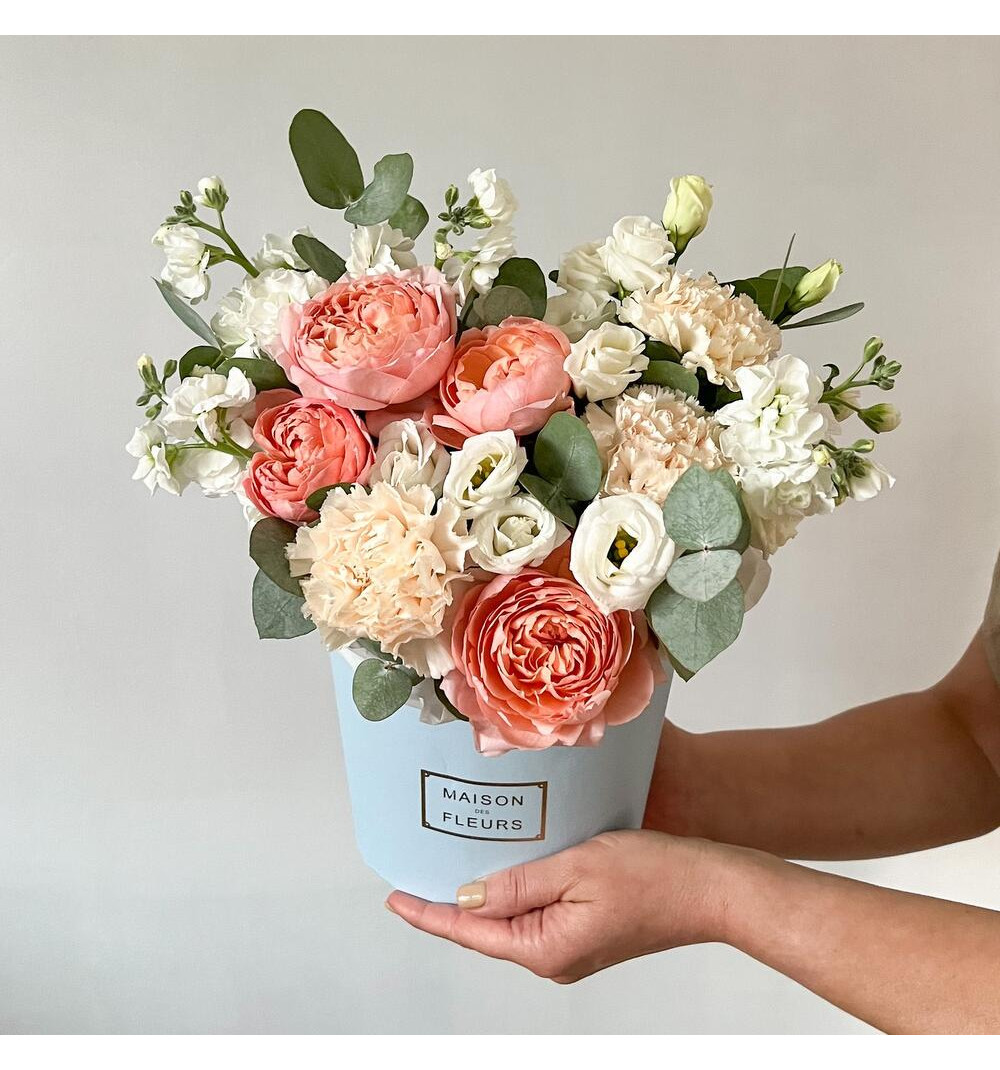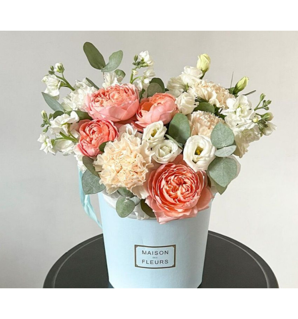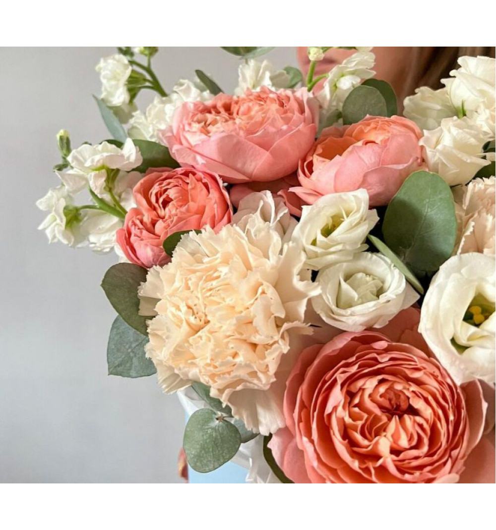 Купить Композиция с персиковыми пионовидными розами и маттиолой. в Есиле за 25 000 ₸ | интернет-магазин «Guls»
