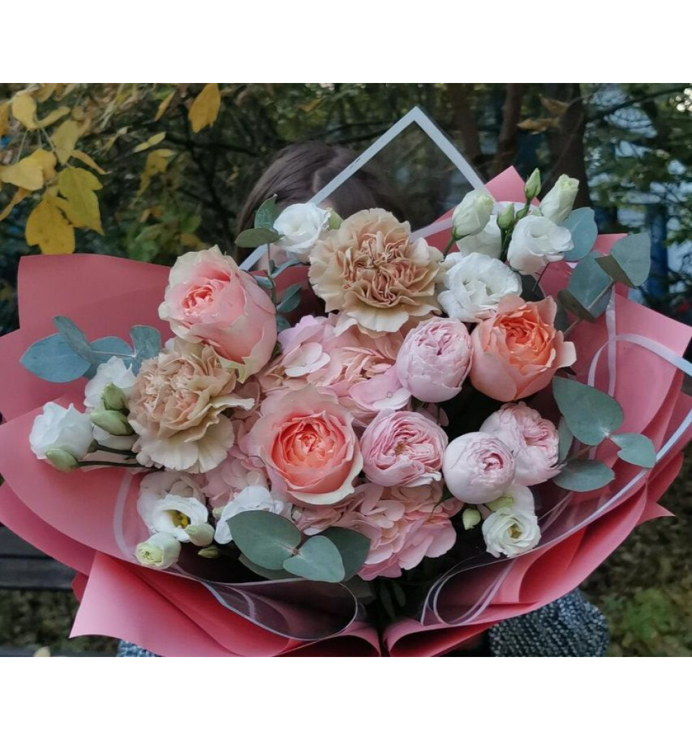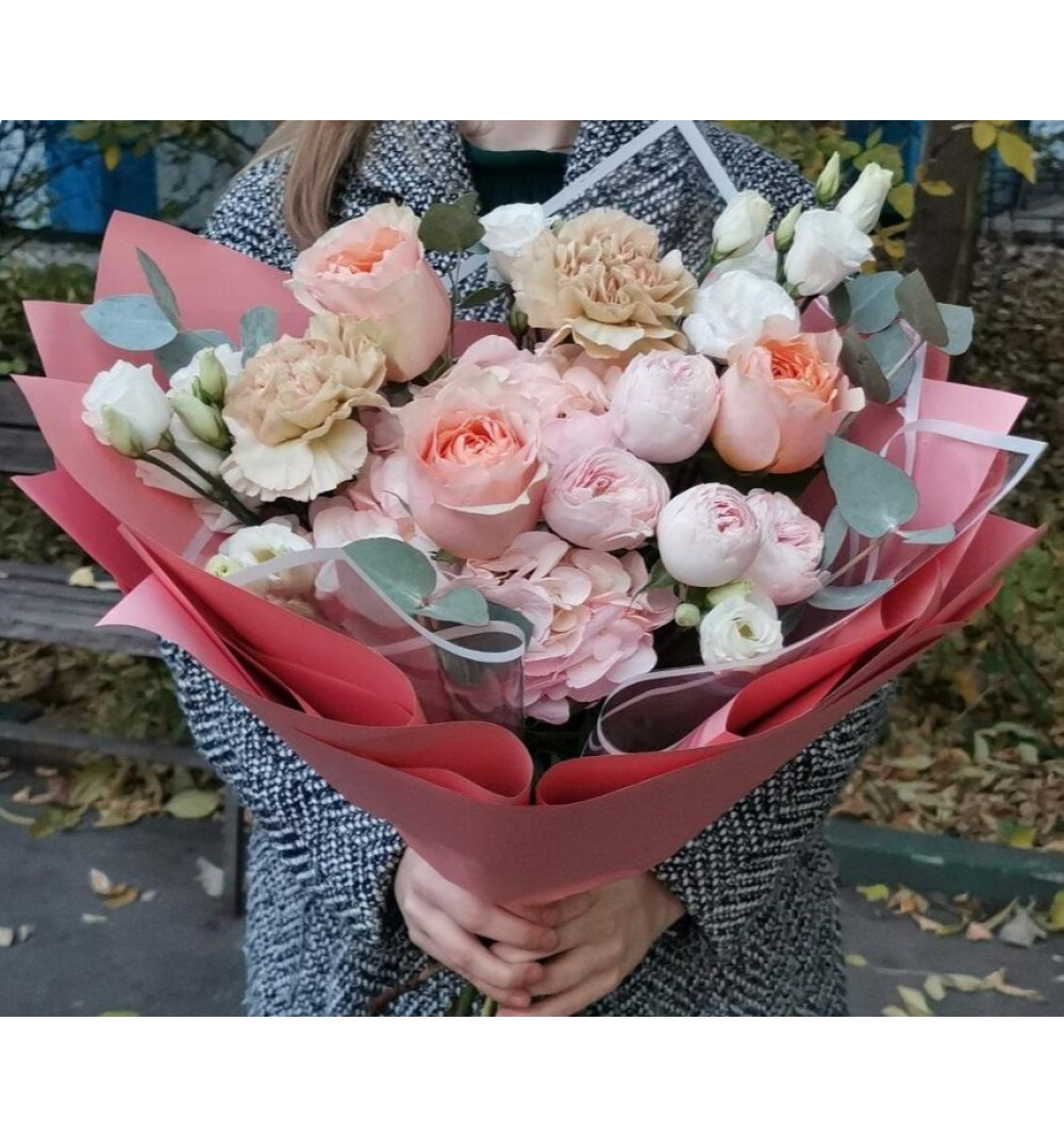 "Нежный букет" с пионовидными розами Гравити и Мэнсфилд, а также гортензией - это утонченная композиция, в которой сочетаются изысканные оттенки и нежные текстуры. Пионовидные розы Гравити, с их восхитительным ароматом, символизируют глубокую привязанность и страсть. Розы Мэнсфилд добавляют нежности и романтики, а гортензия придает букету пышность и воздушность. Этот букет станет замечательным подарком для особых моментов в жизни, воплощая в себе чувства тепла и любви.