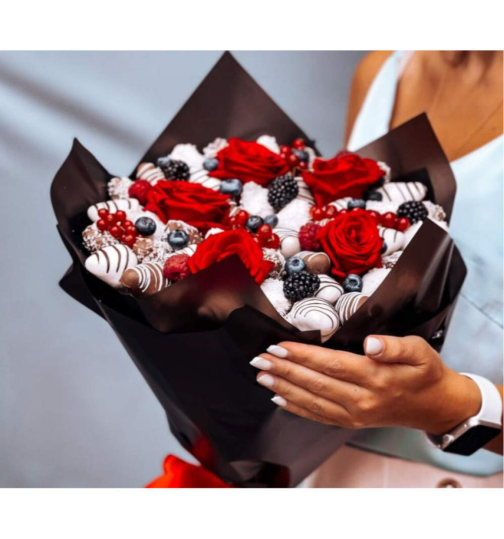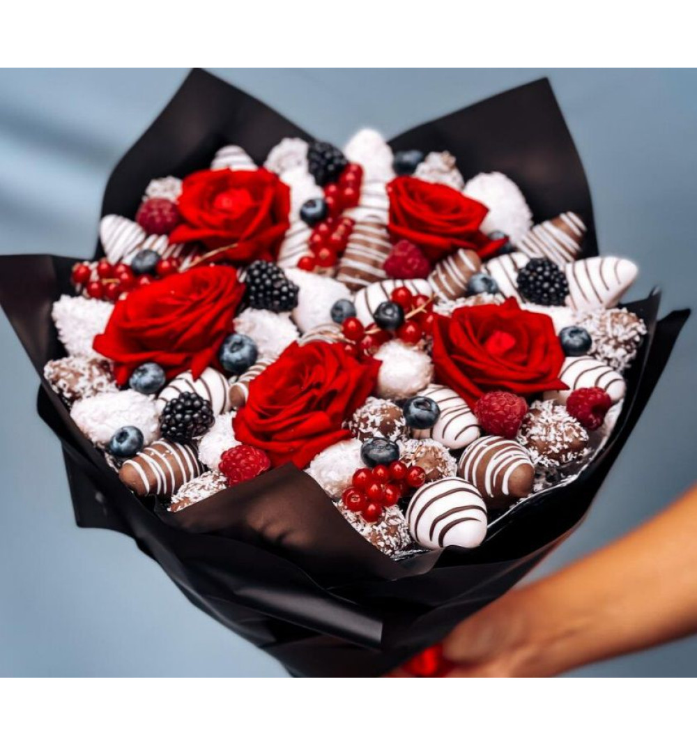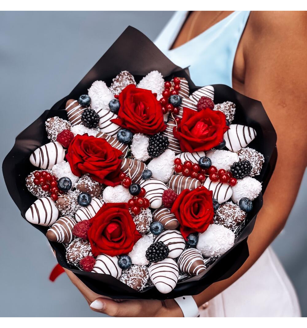 Купить Стильный букет с клубникой в Есиле за 20 000 ₸ | интернет-магазин «Guls»